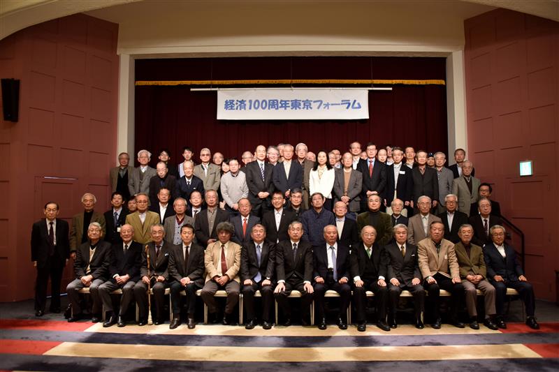 京都大学経済学部創立百周年にあたる本年最初の行事は、慶應大学名誉教授 池尾和人氏、一橋大学教授 齋藤誠氏、慶應大学教授 太田聰一氏、京都大学特任教授 加藤秀樹氏をお招きし1月26日学士会館にて第一回経済交流会を開催し122名が参加した。