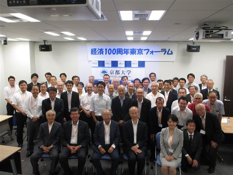 経済学部創立百周年東京フォーラムの第3弾となる第12回経営研究会を9月5日(水)京大東京オフィスにて開催し、51人が出席した。 講師には大和証券顧問・京大経営管理大学院客員教授 安間匡明氏及び熊谷組社長 櫻野泰則氏の二人を迎え、それぞれ1時間の講演をいただいた。 安間講師は「インフラ・官民パートナーシップ(PPP)の活用のメリットと不都合な真実」の演題で、公共インフラの運営に関しPPP・PPI、公共事業の問題点や課題と官民双方にとっての成功の要諦についてお話いただいた。 櫻野講師は「クロヨン建設の秘話」の演題で、黒部第四ダム建設の成功に結び付いた太田垣士郎氏、笹島信義氏の二人の決断と行動を中心に、今も同社に流れるクロヨンスピリッツについてお話いただいた。 講演終了後参加者全員で記念撮影をした。講師との名刺交換や、引き続き行われた懇親会でも出席者相互の名刺交換や情報交換が行われ良い交流が出来た。