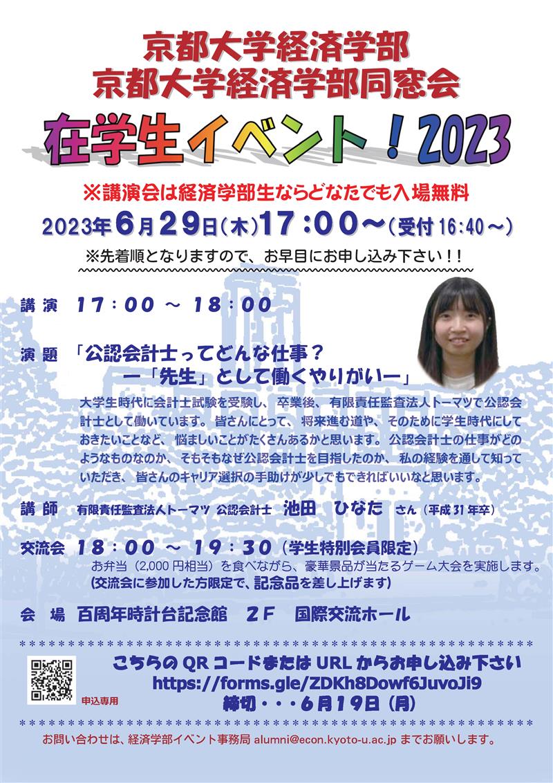 お問い合わせ: 経済学部イベント事務局 alumni@econ.kyoto-u.ac.jp