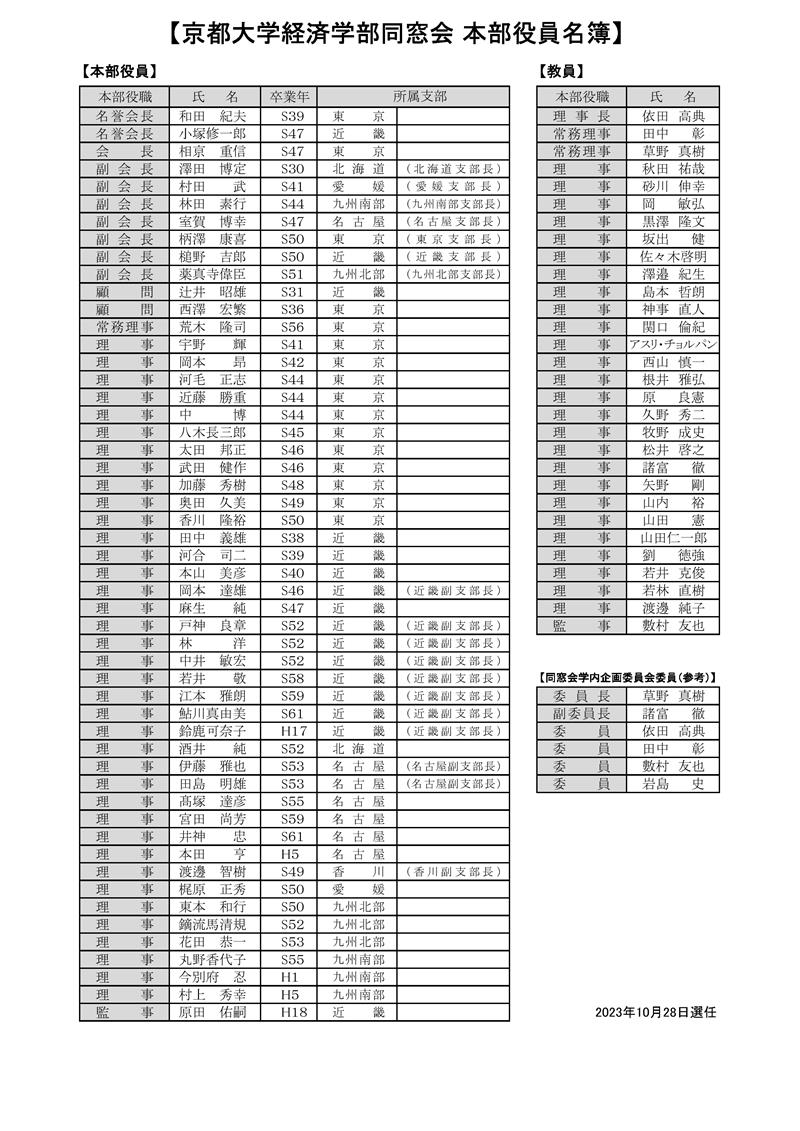 (2023年10月28日 京都大学経済学部同窓会 総会選任)