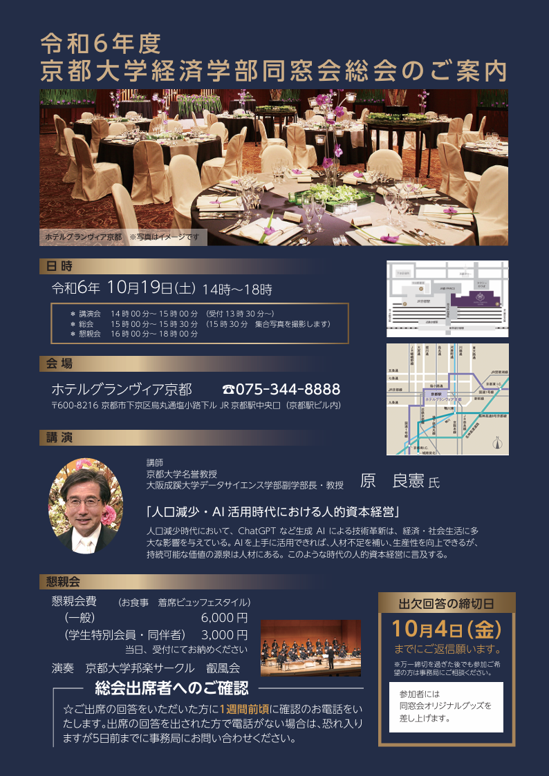 2024年度 京都大学経済学部同窓会 理事会・総会(10月19日)のご案内