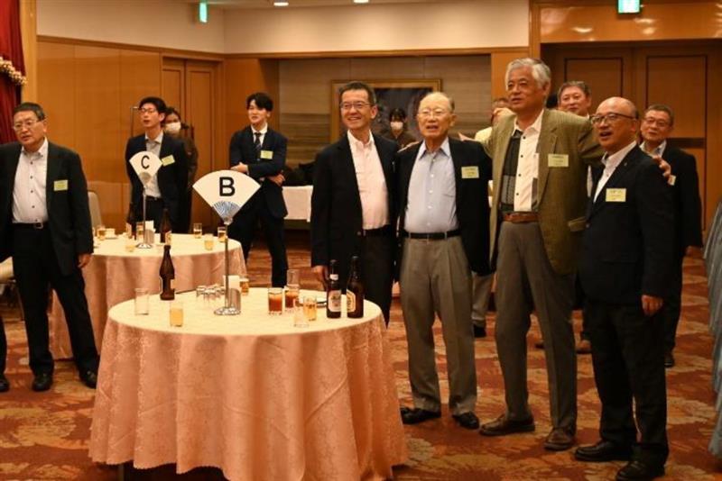 最後に、恒例となっている「琵琶湖周航の歌」と「逍遥の歌、紅もゆる」の合唱が行われ、参加者全員が肩を組んで歌い、一体感を感じるひとときとなりました。懇親会は、伊藤副支部長の中締めにより、次回の再会を誓いながら閉幕しました。