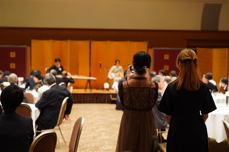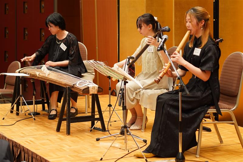中盤では邦楽サークル・京都大学叡風会の皆さんに「六段の調」「千鳥の曲」「地唄・櫻川」「夜叉舞」を演奏いただき、美しい調べを一同堪能しました。