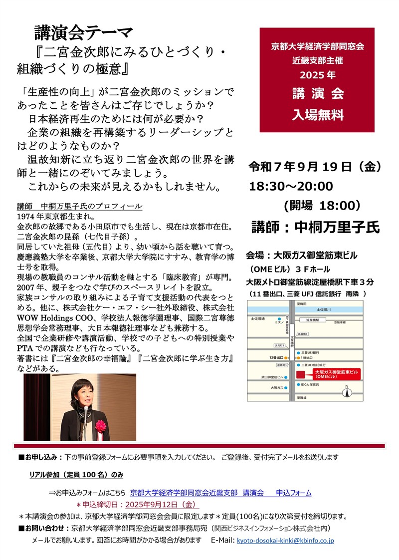 ⇒お申込みフォームはこちら 京都大学経済学部同窓会近畿支部 講演会 申込フォーム