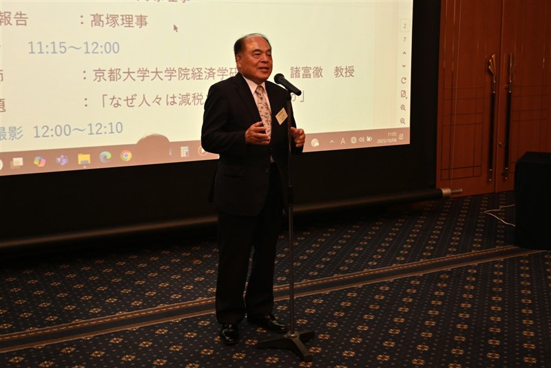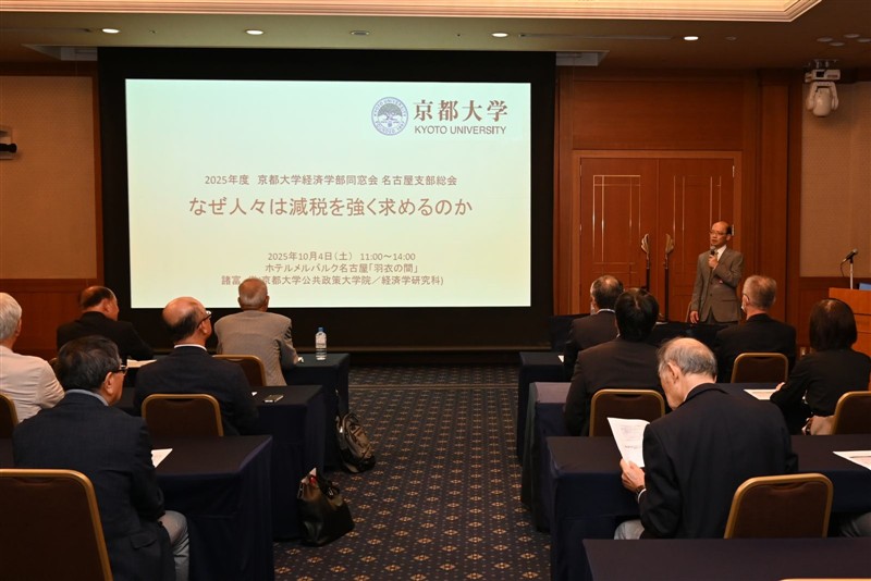 講演会では、諸富徹教授を講師にお迎えし、「なぜ人々は減税を強く求めるのか」と題してご講演いただきました。「103万円の壁」から始まり、7月の参議院選挙で争点となった税制や社会保障について、各政党の具体案を比較しながら、私たちの暮らしに直結するテーマをわかりやすく解説いただきました。参加者は熱心に耳を傾け、メモを取る姿も見られました。