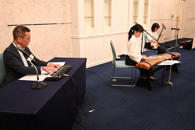 今年はアトラクションとして、邦楽サークル「叡風会」の濵中佑菜さん(4回生・三味線と唄)と奥島葉さん(1回生・箏)による演奏が披露されました。経済学部に所属するお二人の演奏は華やかで、まるで新年を迎えたような雰囲気に包まれ、参加者は娘や孫のような若々しく初々しい演奏者に心を寄せながら聴き入りました。