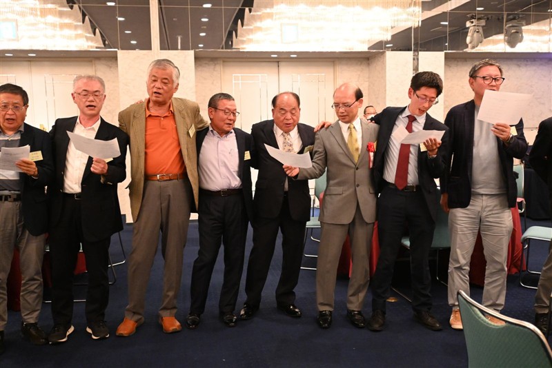 恒例の合唱では、「琵琶湖周航の歌」「逍遥の歌・紅もゆる」を、叡風会のお二人と井神(筆者)の電子ピアノ伴奏により、参加者全員が肩を組んで一列に並び、心を合わせて歌い、最後に伊藤副支部長の中締めにより盛会のうちに閉幕いたしました。
