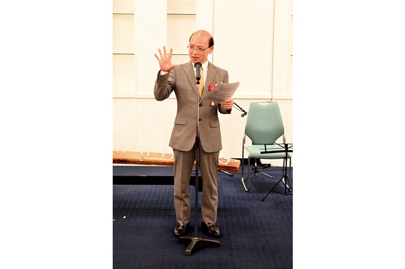 懇親会は田島副支部長の乾杯で幕を開け、諸富教授より大学の近況報告として、経済学部の「特色入試」についてご紹介いただきました。一般入試とは異なるユニークな選抜方法に、参加者一同興味深く耳を傾けていました。